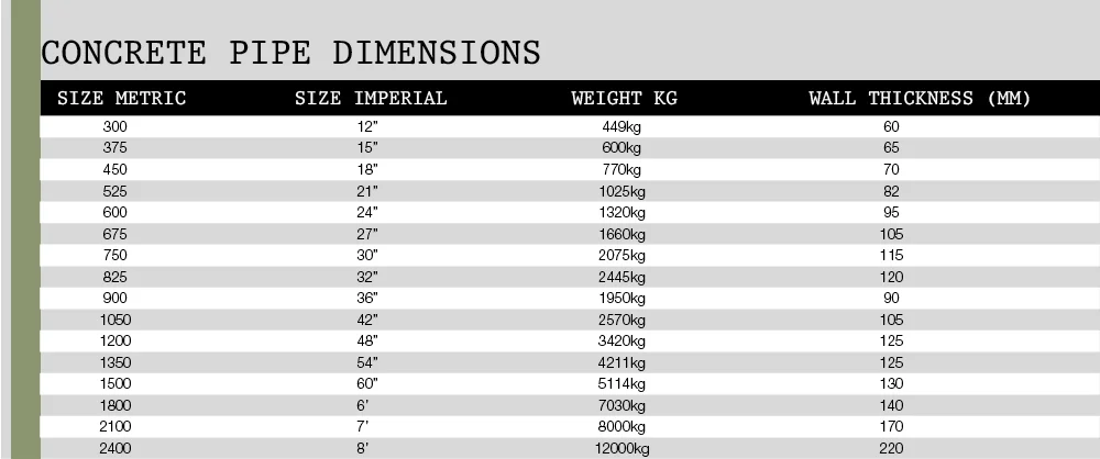 Sizes available are from 300mm DIA to 2400mm DIA.